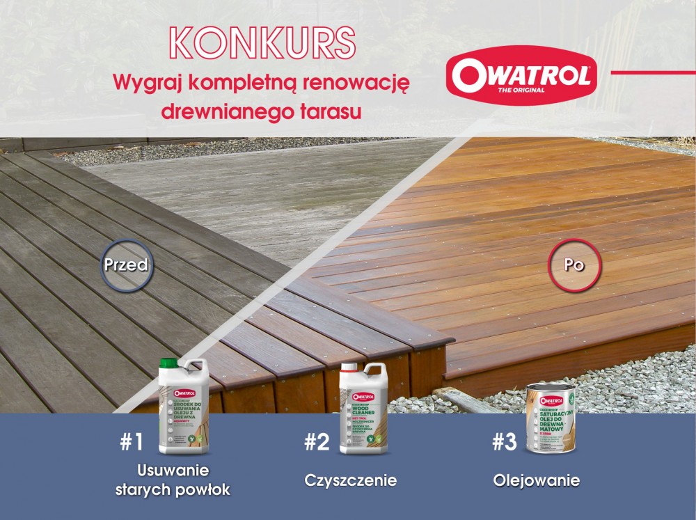 Zapraszamy do udziału w naszym konkursie, w którym do wygrania jest kompleksowa renowacja drewnianego tarasu z wykorzystaniem profesjonalnego systemu Owatrol.